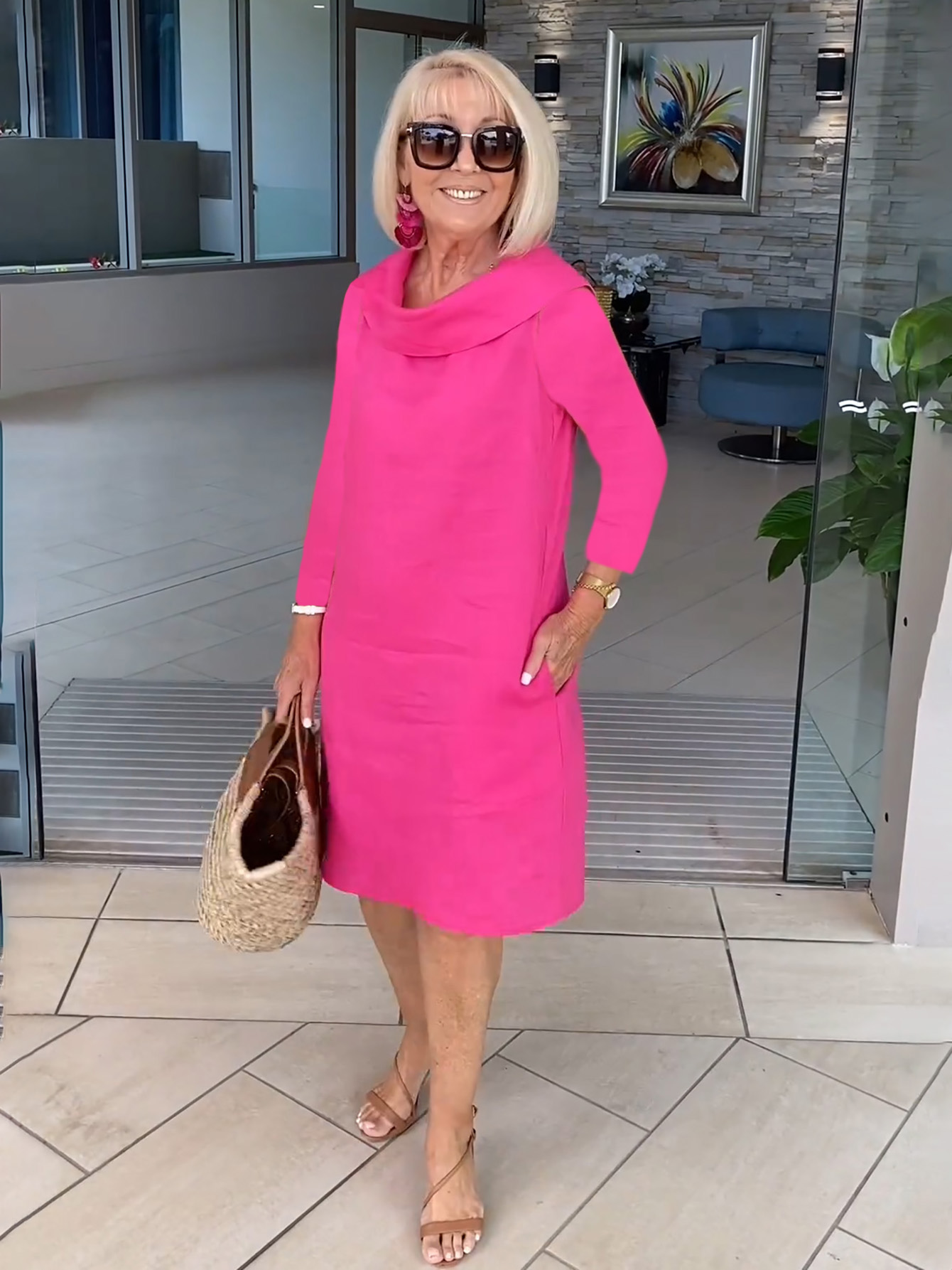 Pile Collar Short-sleeved Solid Color Casual Cotton and Linen Dress