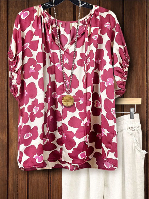 Boho Deep V Half Sleeve Dress Loose Floral Skirt Vacation Dress