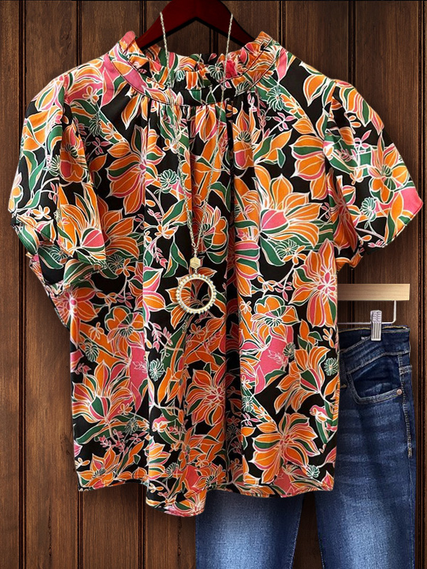 Featuring a floral print in blue and white tones and stretchy knit fabric, this T-shirt is perfect for any casual outing. Soft-touch fabric and a relaxed silhouette ensure all-day comfort, while an elegant floral print adds a touch of casual sophistication to your look.