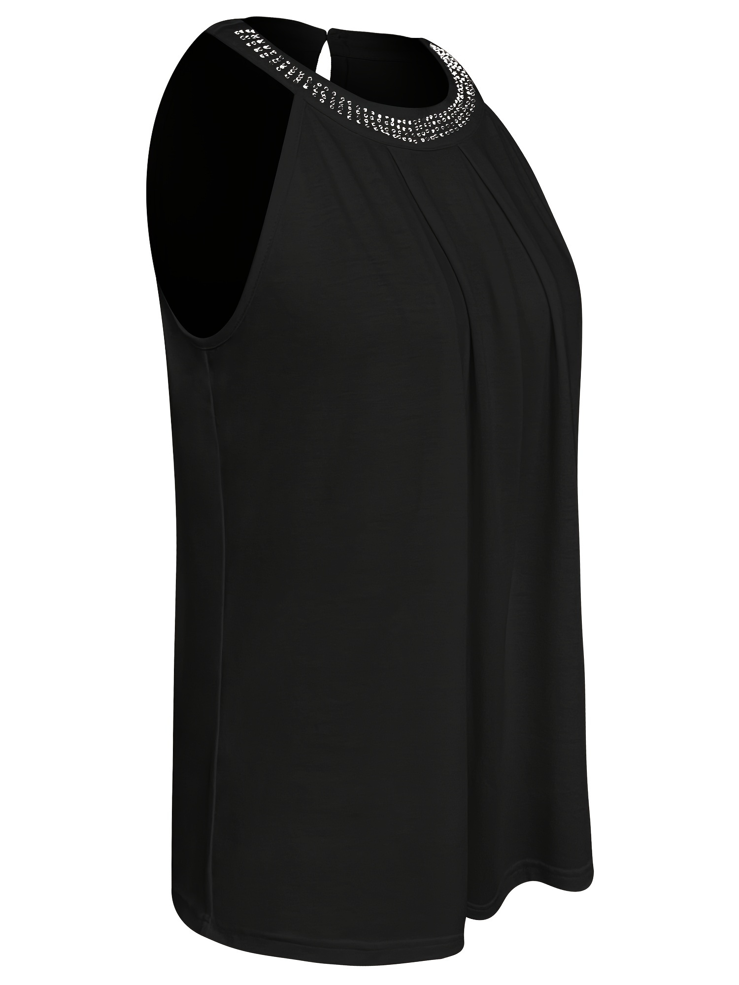 Rhinestoned Pleated Halter Neck Top, Versatile Sleeveless Halter Top For Summer, Women’s Clothing