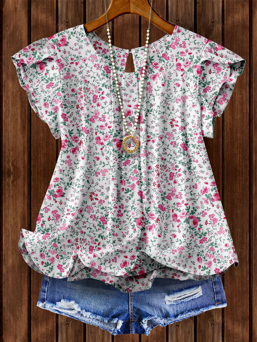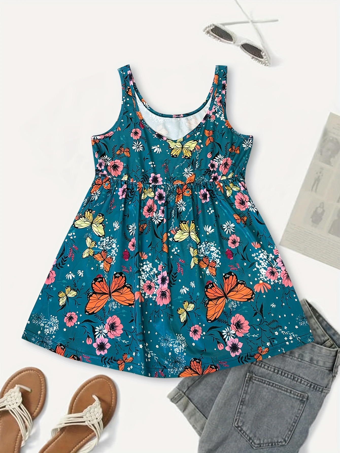 Butterfly & Flower Print Tank Top, Casual V Neck Sleeveless Flare Top For Summer, Women’s Clothing