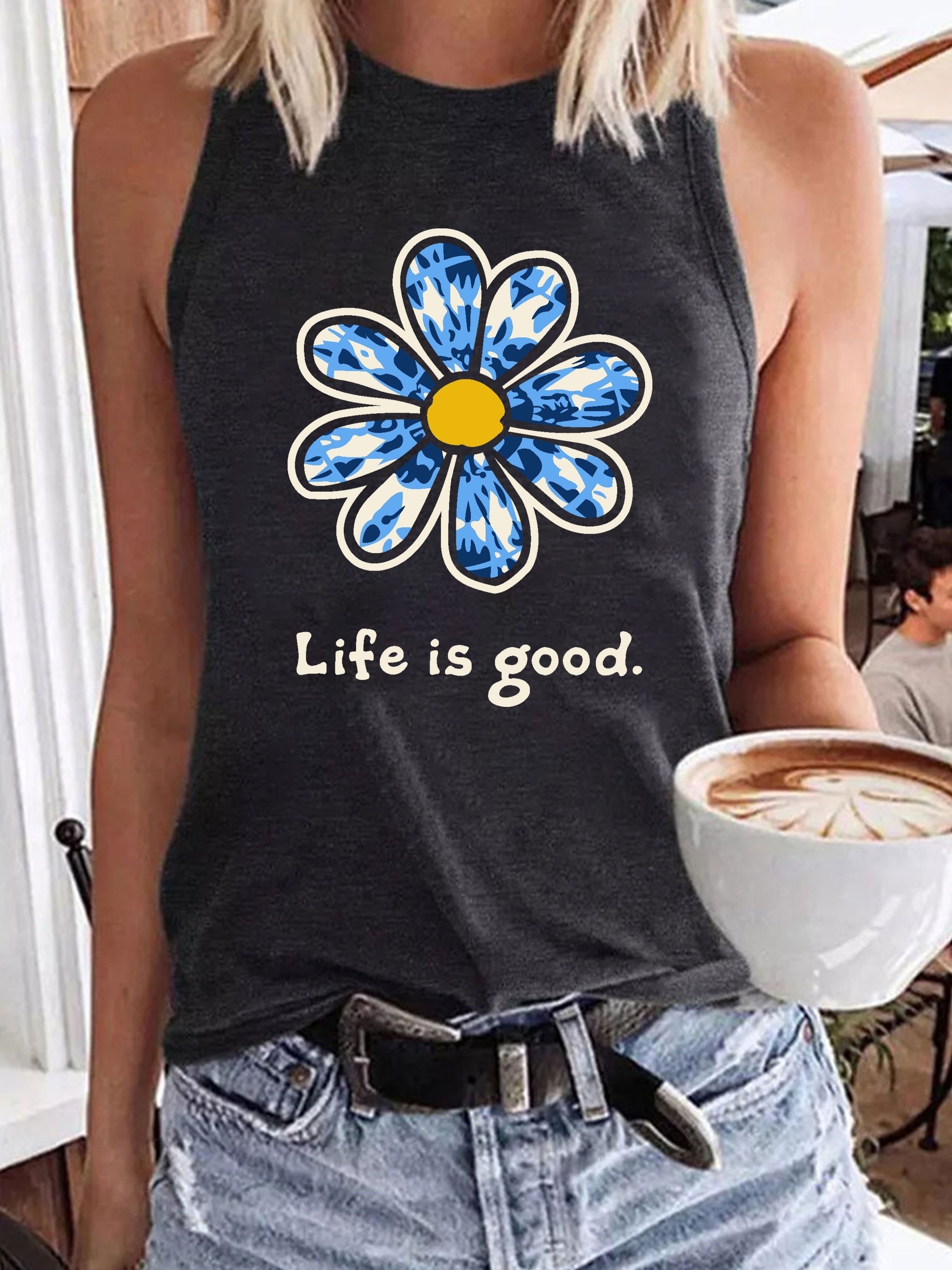 Be the first to review “Floral & Letter Print Top, Casual Crew Neck Versatile Sleeveless Top, Women’s Clothing” Cancel reply