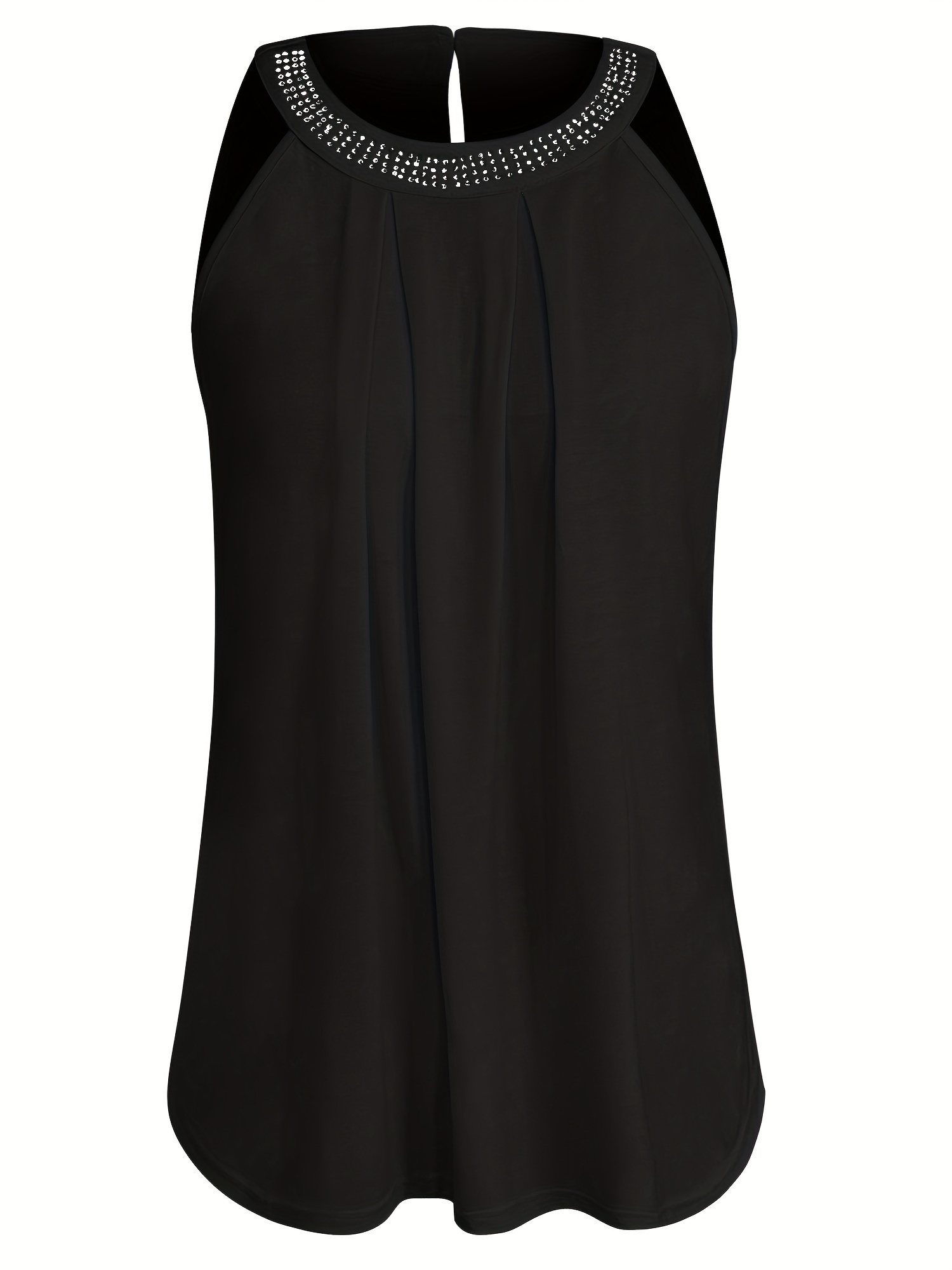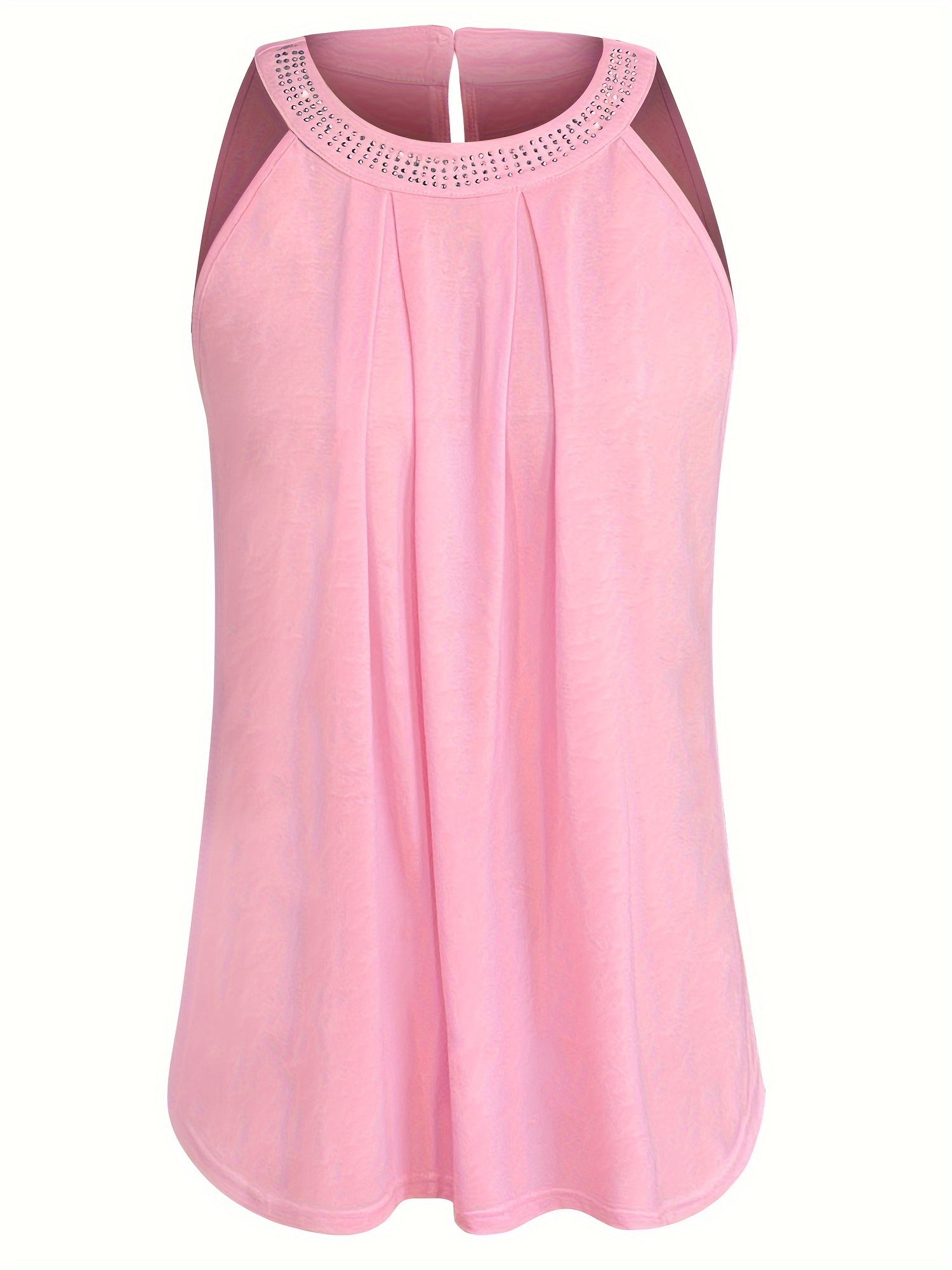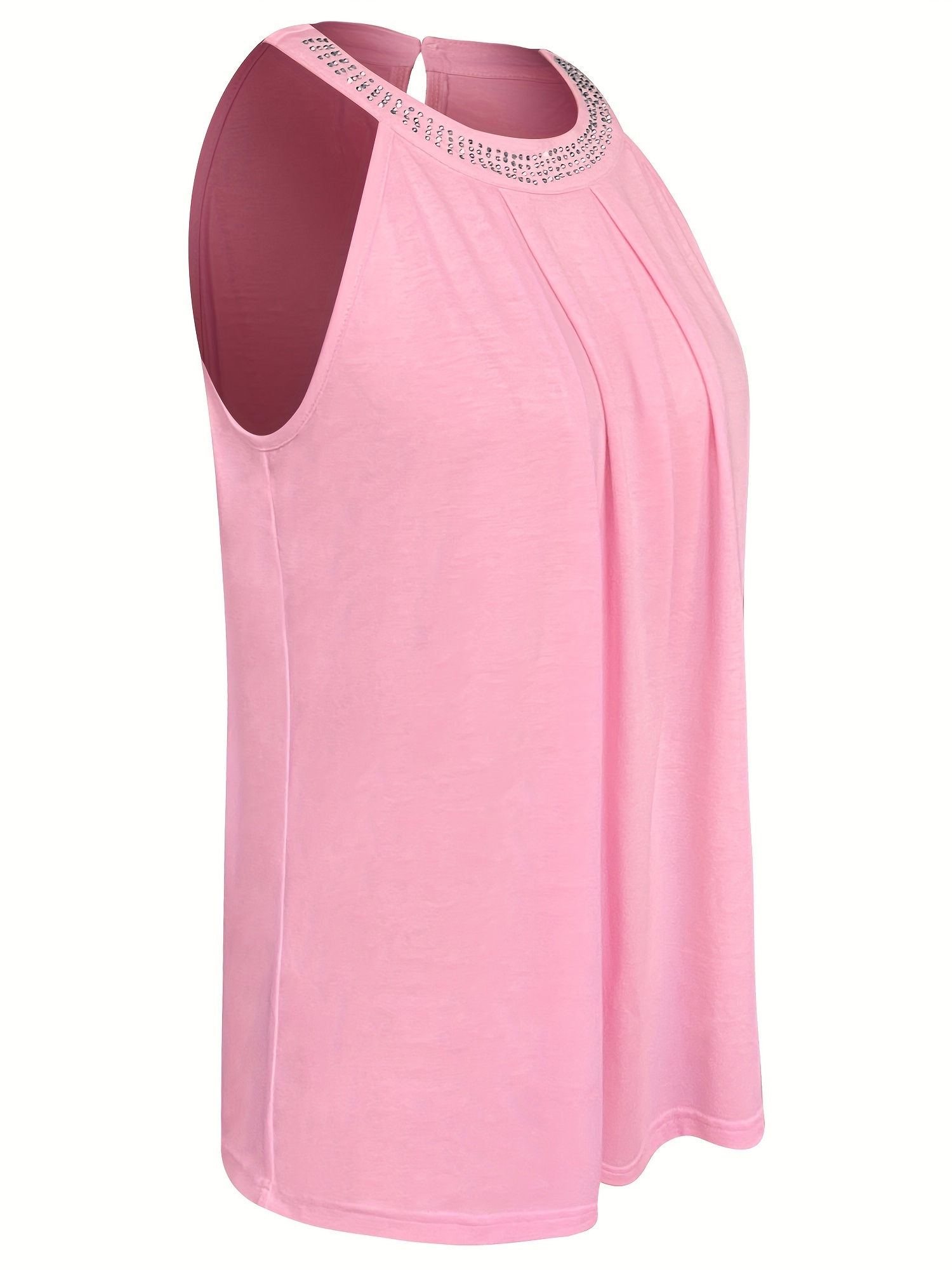 Rhinestoned Pleated Halter Neck Top, Versatile Sleeveless Halter Top For Summer, Women’s Clothing