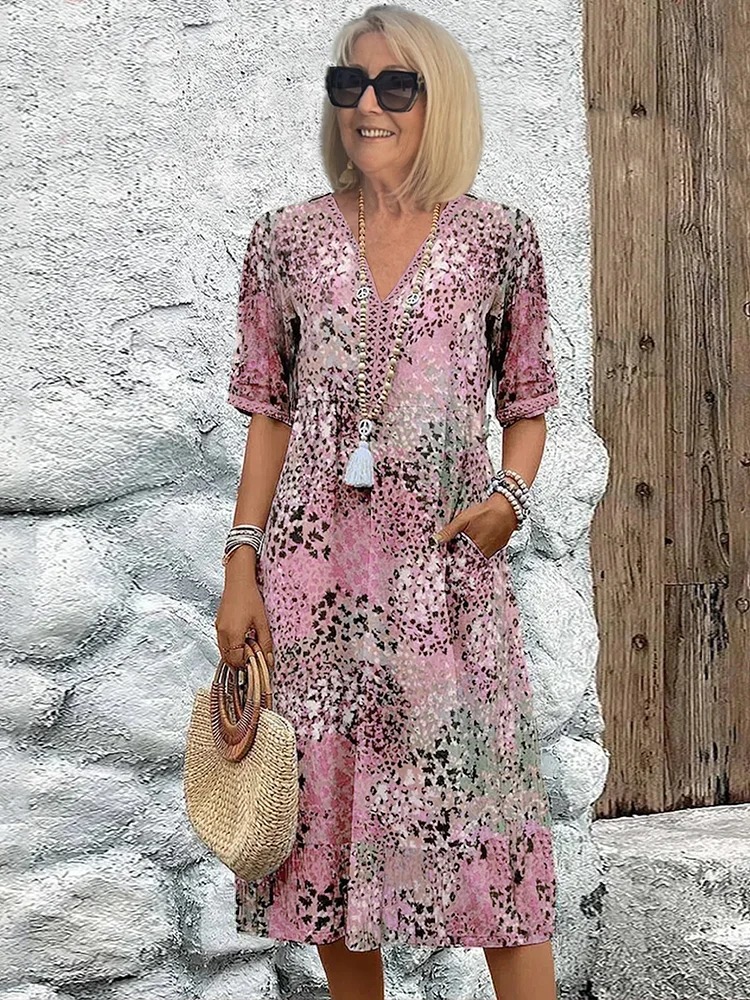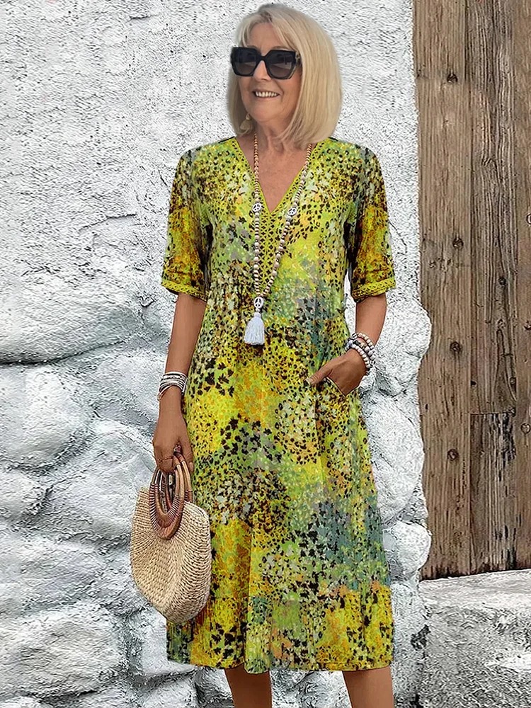 Discover the perfect blend of style and comfort with our Women’s Short Sleeve Summer Leopard Lace Dress. This V-neck, knee-length A-line dress in khaki is designed for daily outings and casual wear. The elegant leopard lace adds a touch of sophistication, making it ideal for senior women who want to look chic and feel comfortable. Available now at Turelifestyle in a variety of sizes.